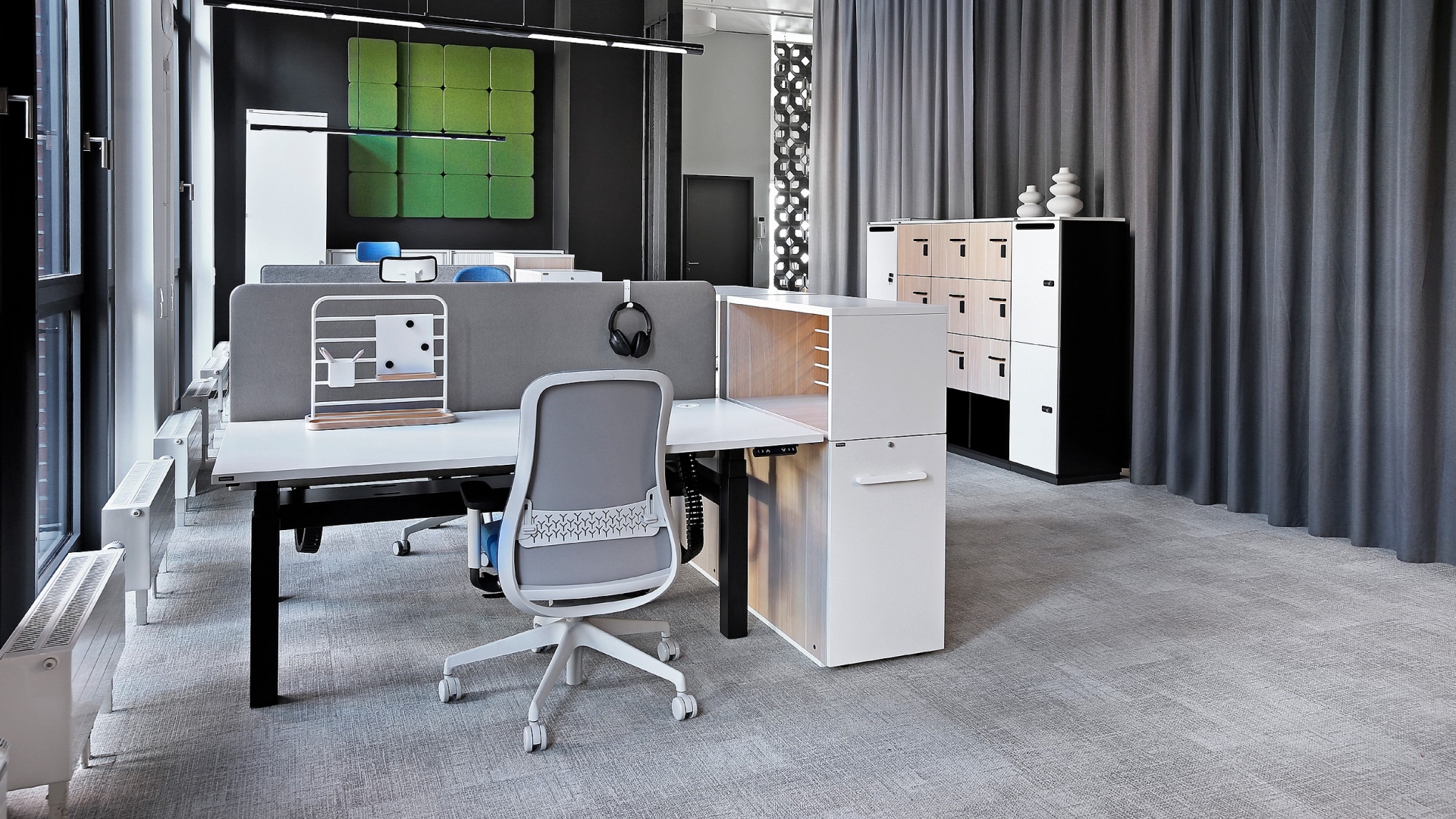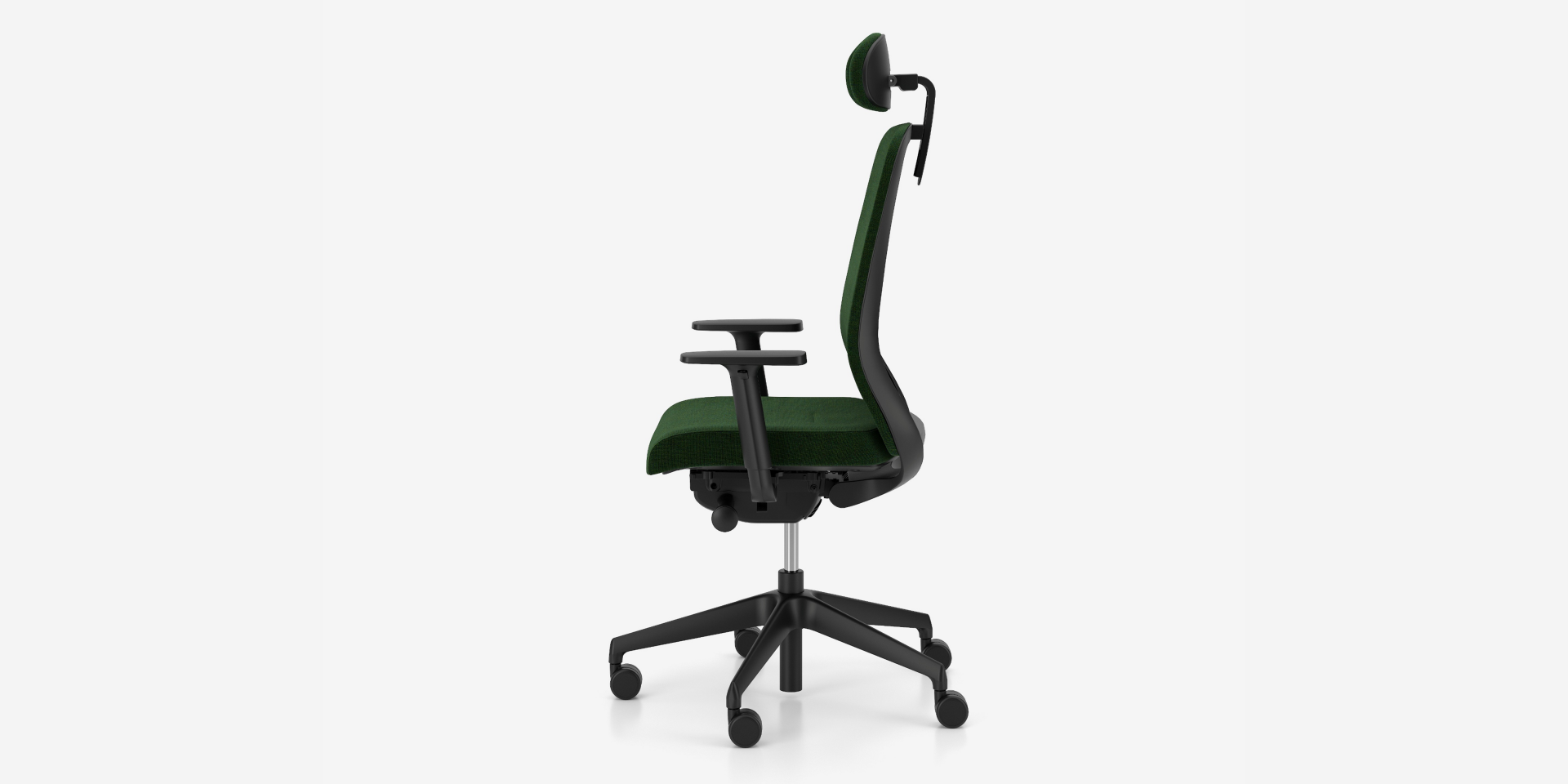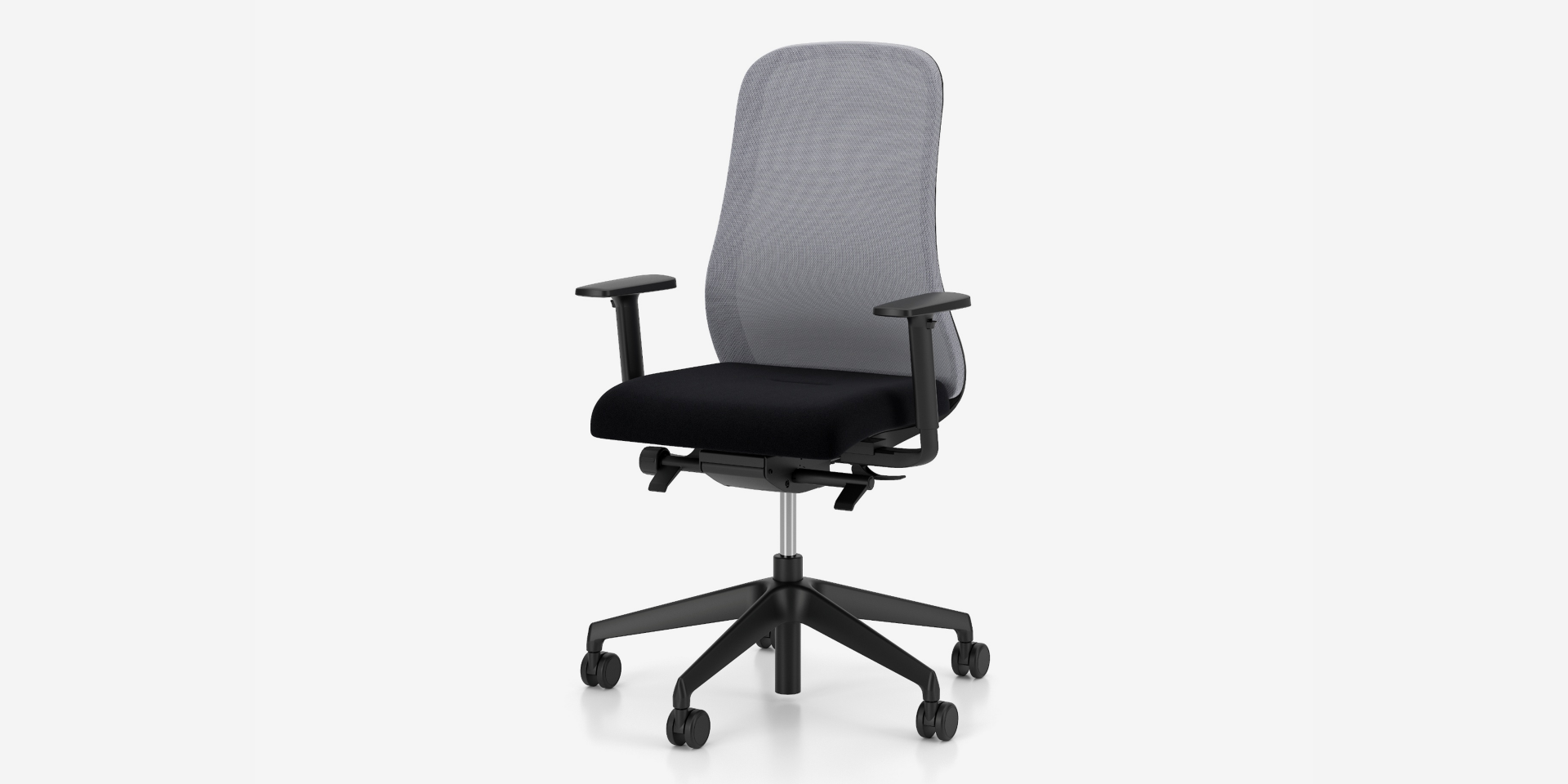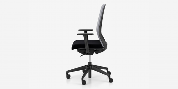 2-D armrests (R70) – armrest bar made of black glass fiber reinforced polyamide (PA + GF), structure made of black or light grey glass fiber reinforced polyamide (PA + GF), armrest pad made of black soft polyurethane (BPU). Adjustment range of the armrests: height 80 mm, side movement of the armrests 70 mm.