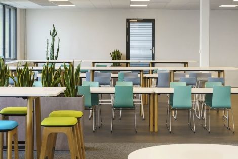 A total of approx. 74 workstations, plus collaboration zones and a cafeteria were installed. SITAGGO desks, SITAGXILIUM functional swivel chairs, SITAG MCS acoustic walls as well as Nowy Styl storage carcasses and roller shutter cabinets were mainly used in the office area.